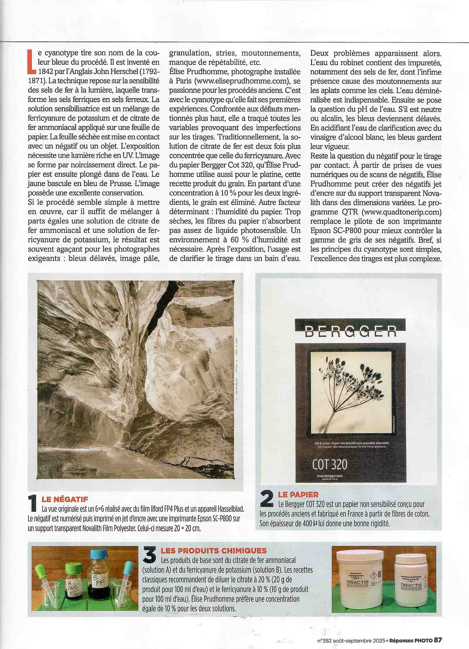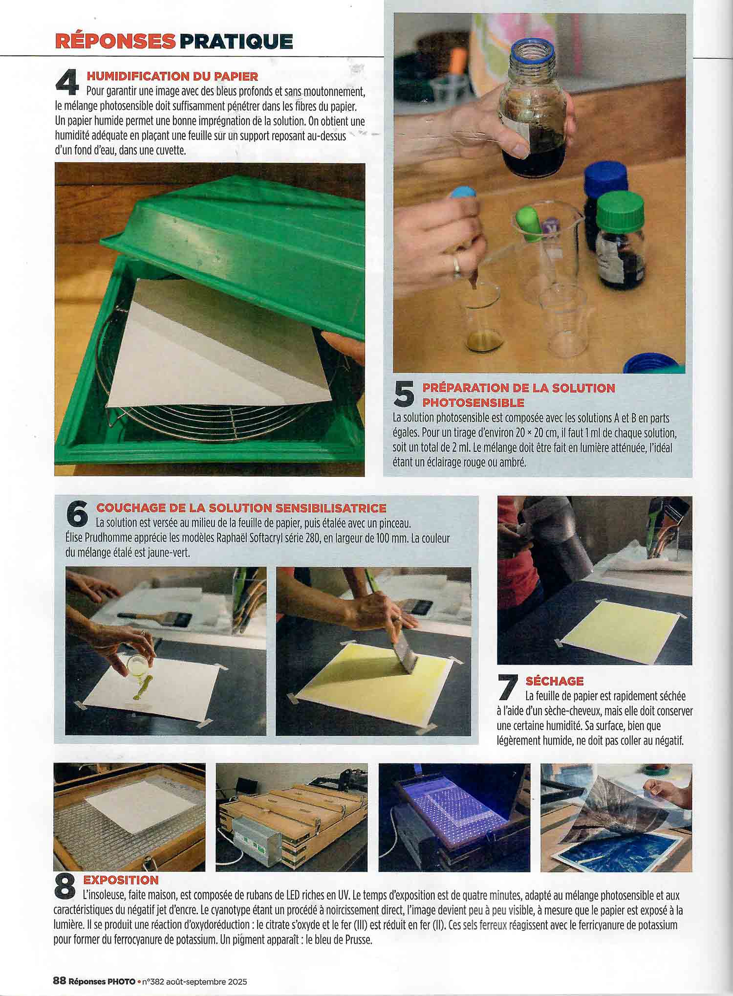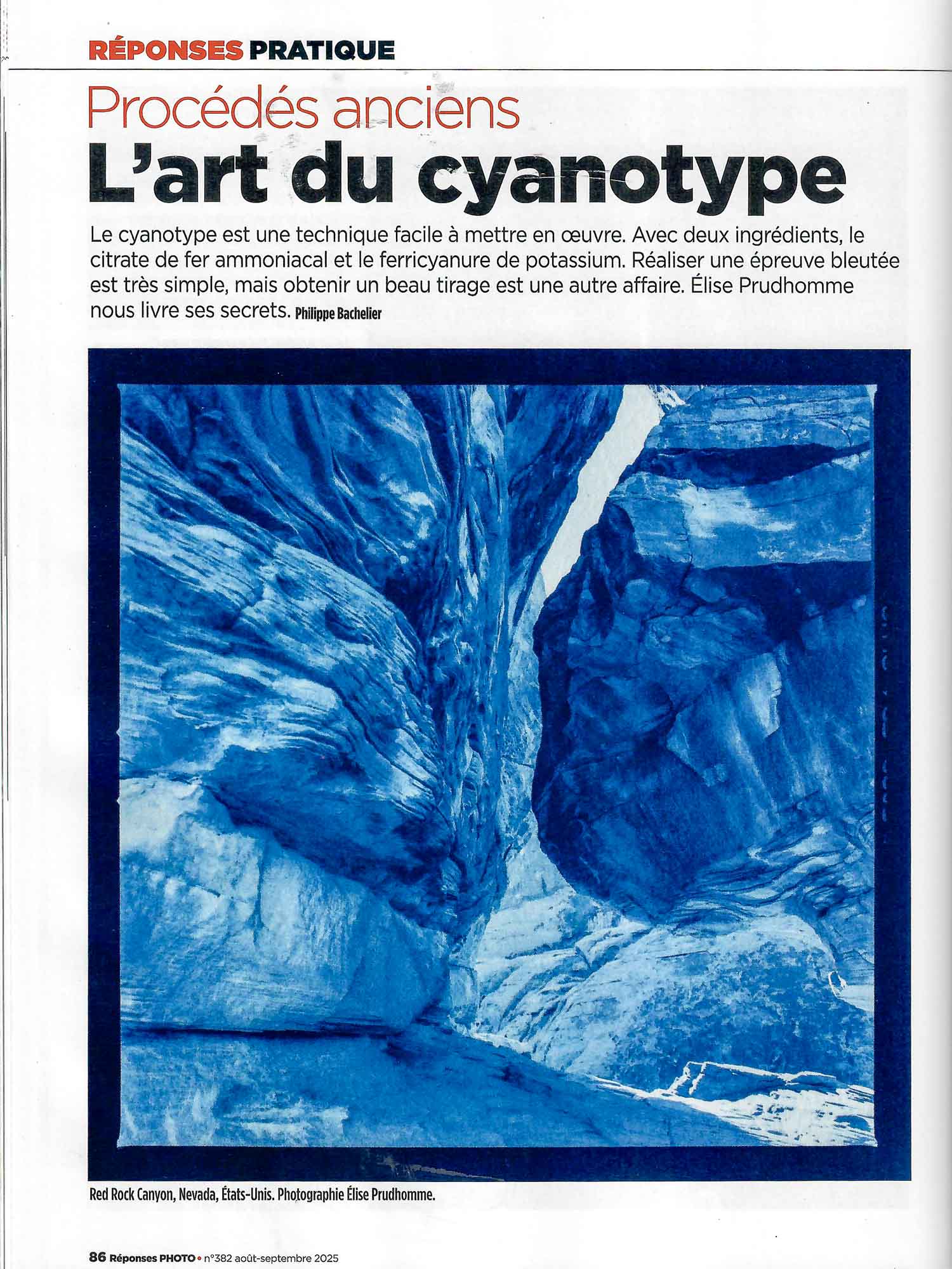 2025 Procédés anciens – L’art du cyanotype , Réponses Photo n°382, août-septembre 2025, p. 86 – 89.